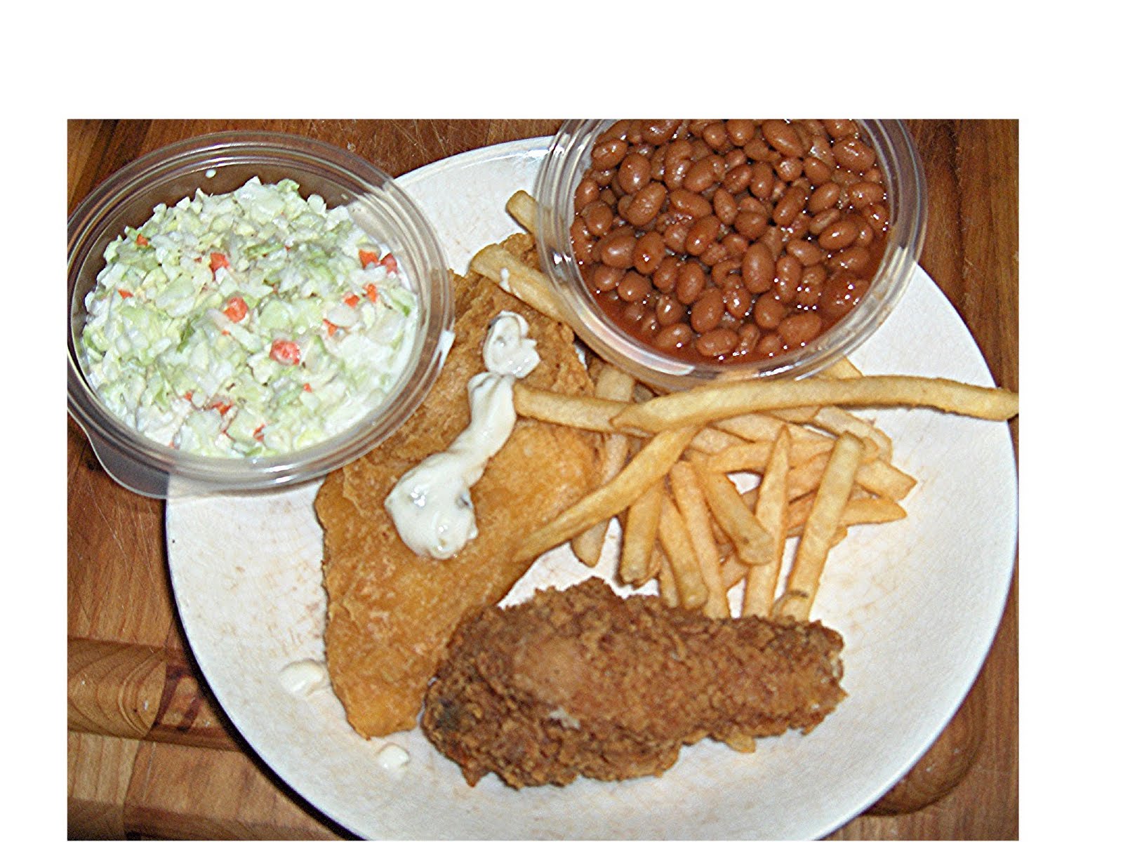 Turned out the fish wasn’t salty at all. It was light, delicate, and delicious. As for the chicken, well, what can I say? It was that KFC taste that I was lusting for. The fries were cold by the time I got home. The cole slaw was crunchy goodness, and the beans warm and inviting.
